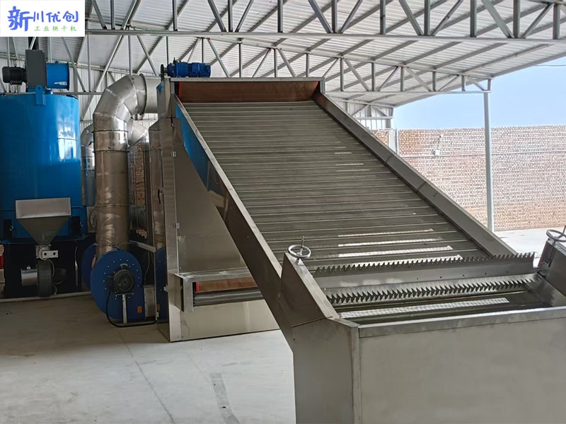 四川客戶在我司訂購1條網(wǎng)帶式烘干機,與我司技術詳細溝通和方案確認后,選定用生物質顆粒為熱源。生物質熱風爐每小時輸出熱值能達到60萬大卡,網(wǎng)帶式烘干機尺寸是17×4.8×3.2(米),根據(jù)客戶需求進行設計,整套烘干機現(xiàn)已搭建完成,已經(jīng)投入正常使用中,讓我們來看看現(xiàn)場反饋吧!